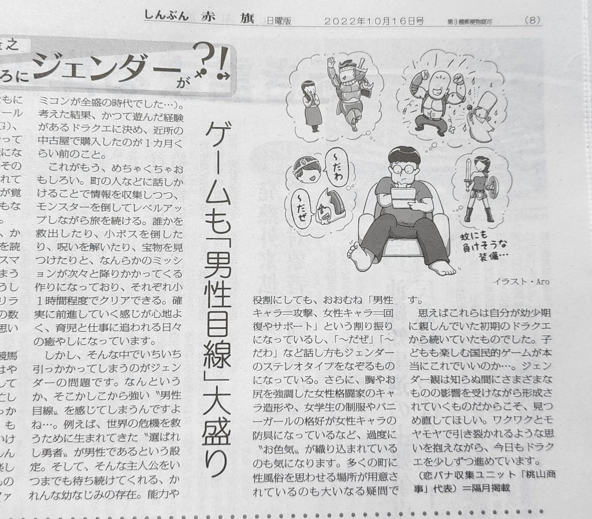 【悲報】しんぶん赤旗日曜版🕊さん、暗に「ドラクエを規制すべき」とほのめかすような内容のエッセイを載せるw