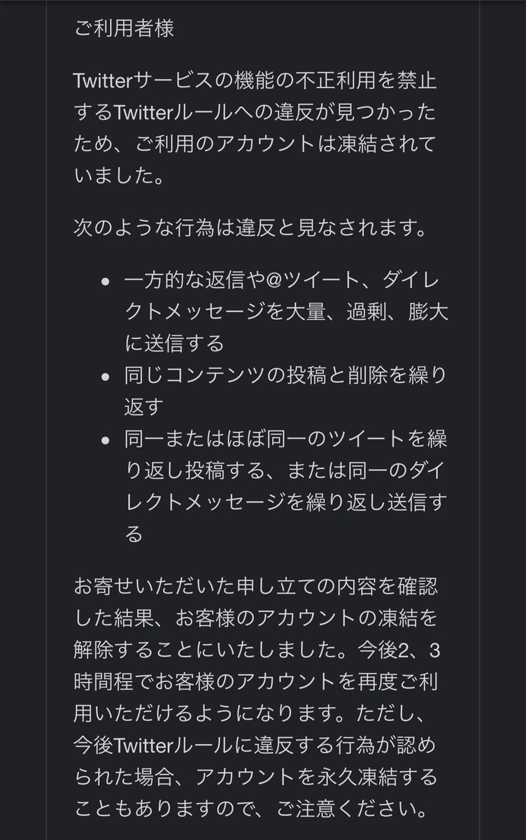 文科省も認め、事実であったことは明らか。ツイッターJAPANもニュースくらいは見るだろう。虚偽でないことがわかったから解除するよゴメンネくらい言われてそのうち復旧するかと構えていた