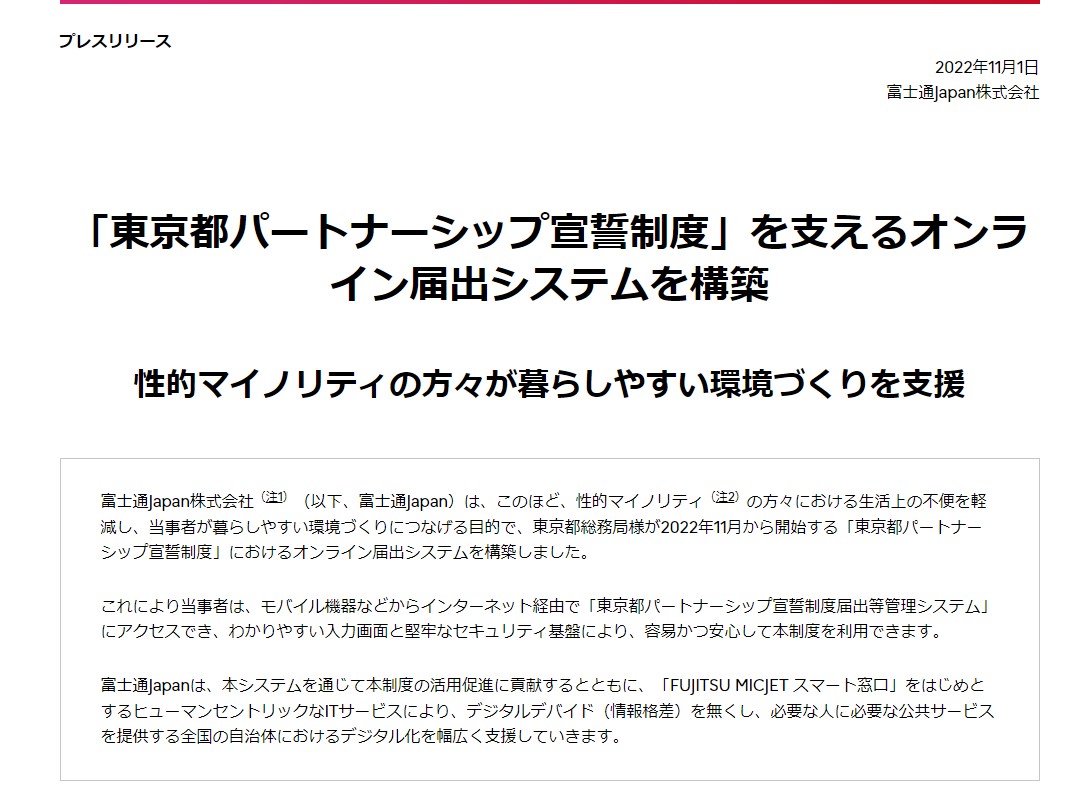LGBT利権①東京都パートナーシップの ネット申請システム開発は コンビニ交付不具合の 富士通Japan