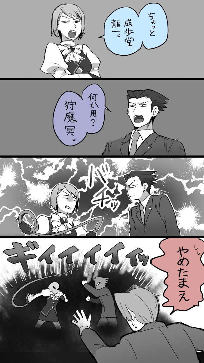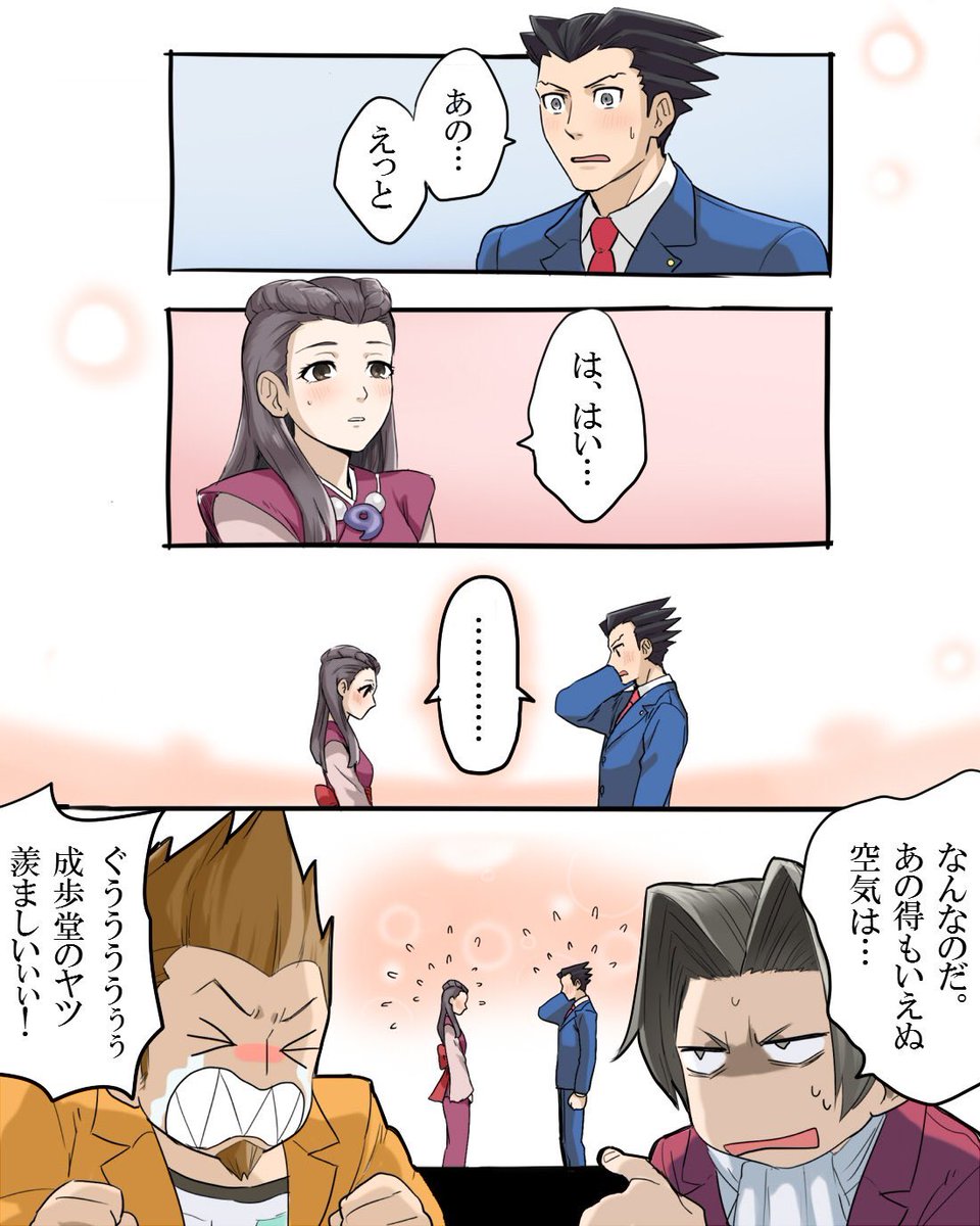自分が6年前に描いたナルホドくんとメイちゃんのヤツだとこの辺が好き。 本編のフルネームの呼び合いカワイイよね。