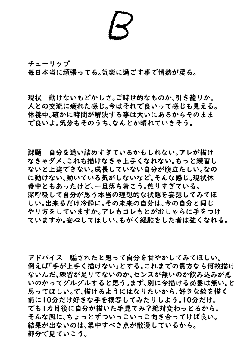 出来た!絵描き向け占い!現状と課題とアドバイス!!想像力と読解力に自信のある方は絵描き以外の趣味や仕事でもいけそうです。1枚目に選択肢!字と体裁汚くてごめんね!!ピンとくるもんだけ拾ってね!複数選択可!!楽しんでね!!!