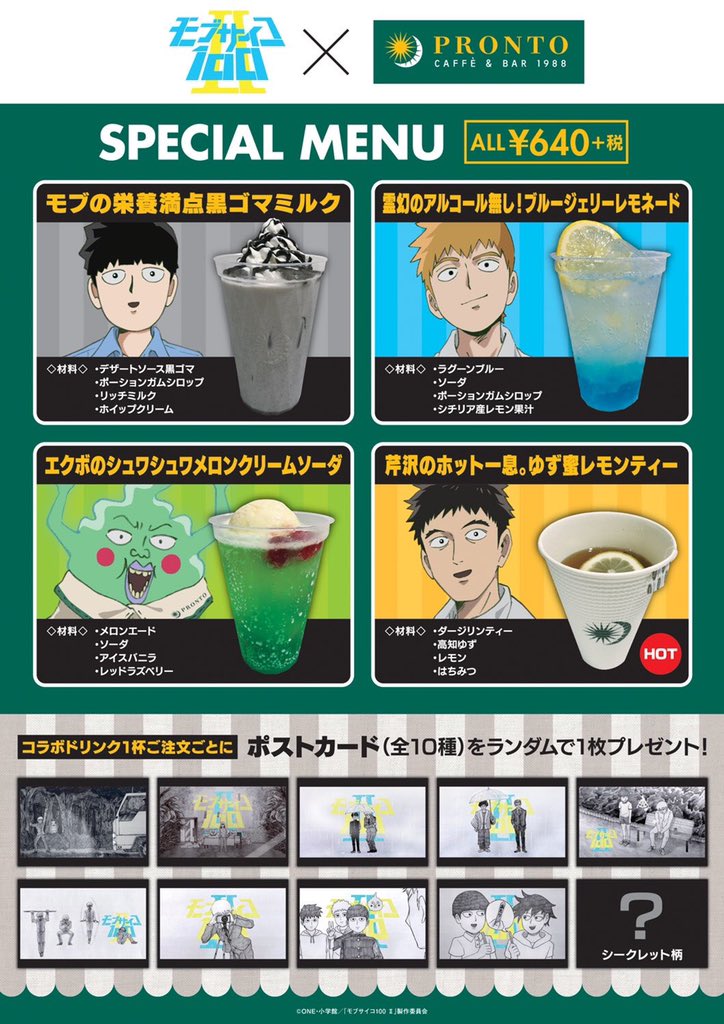 📢「モブサイコ100Ⅱ×PRONTO」コラボは本日から!!!!!📢