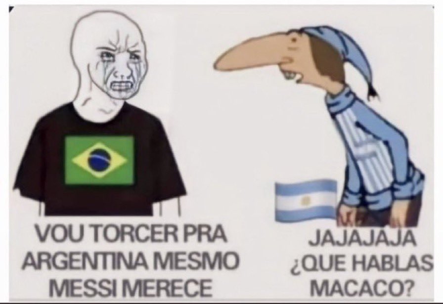 Quem dera o problema fosse ser zoado por brasileiro que torce contra. Tô triste por ter rodado mesmo. Dou maior valor para a seleção. Papo de ficar triste por ver o meu avô triste. Enfim, cada um faz o que acha certo. Em 2026 tem mais. Tem muito o que fazer não…