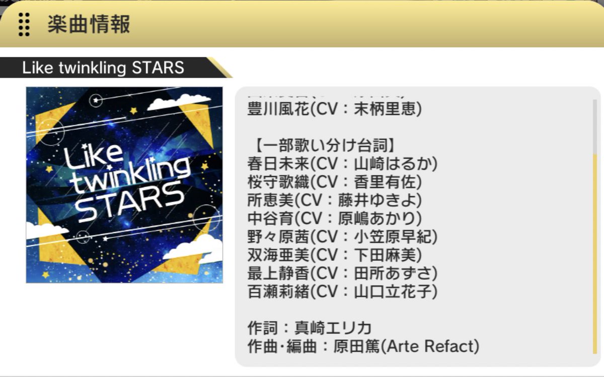 イベント楽曲「Like twinkling STARS」の作編曲担当しております。