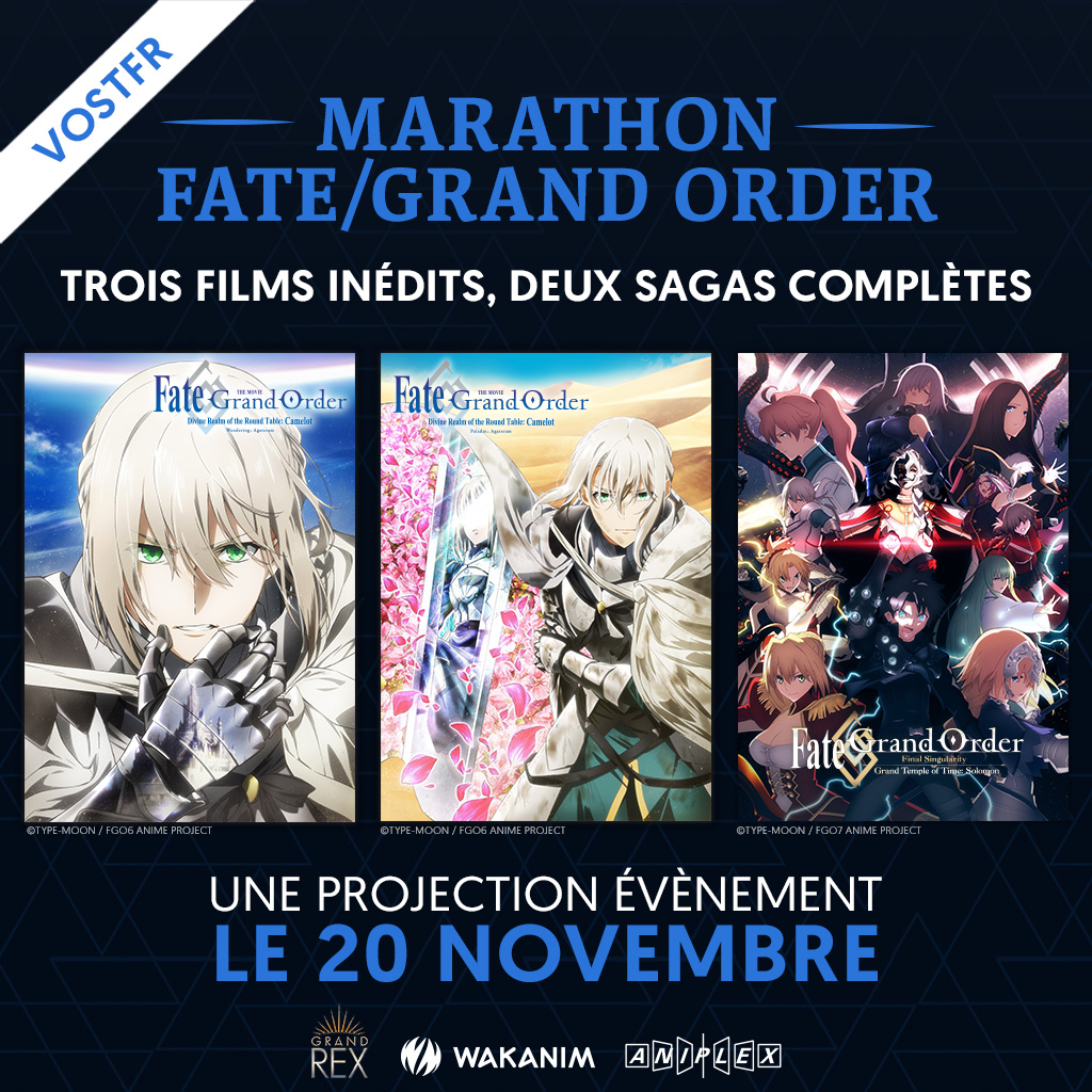 Invocation de tous les Masters au @LeGrandRex le samedi 20 novembre à Paris pour une projection unique des trois films inédits Fate/Grand Order !