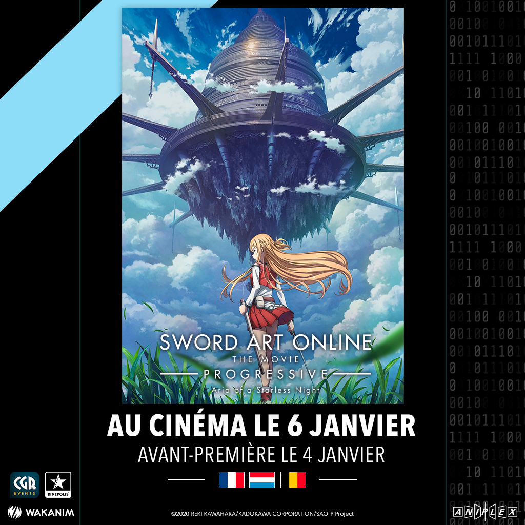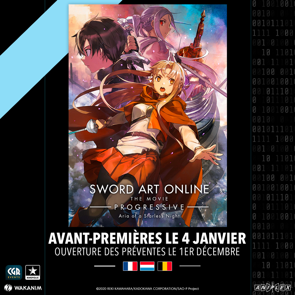 Game restart ! Sword Art Online -Progressive- arrive au cinéma dans toute la France avec @CGR_Events, mais aussi en Belgique et au Luxembourg ! Replongez dans l'Aincrad en VOST et VF le 6 janvier exclusivement sur grand écran. Liste des salles et préventes très bientôt !