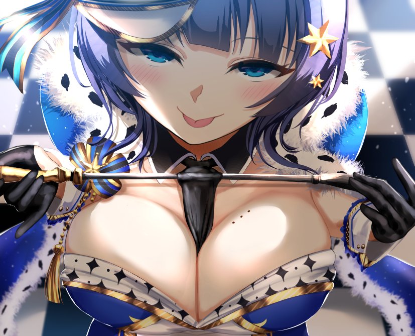 船長の胸の谷間にできた汗