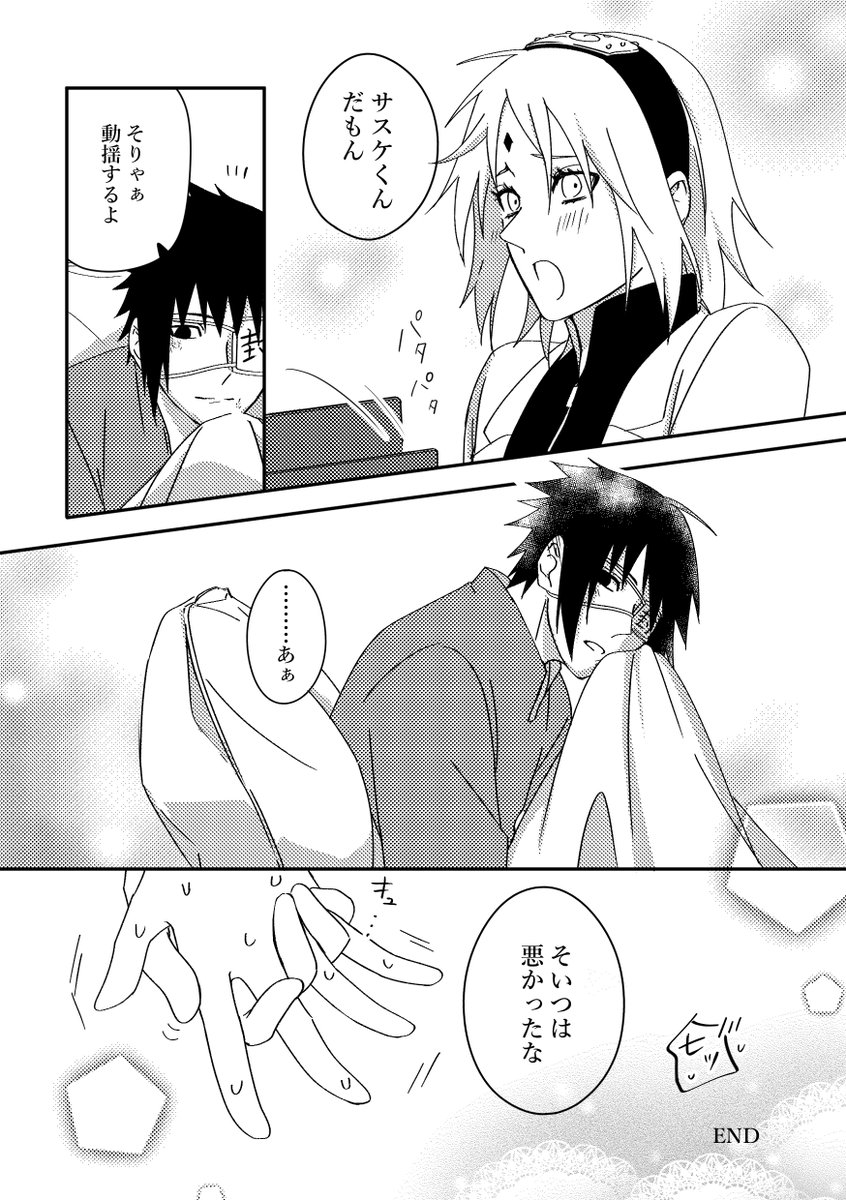 第4次忍界大戦直後の曖昧な2人を描きました。サスケは半分本気、半分冗談な心持ちです。