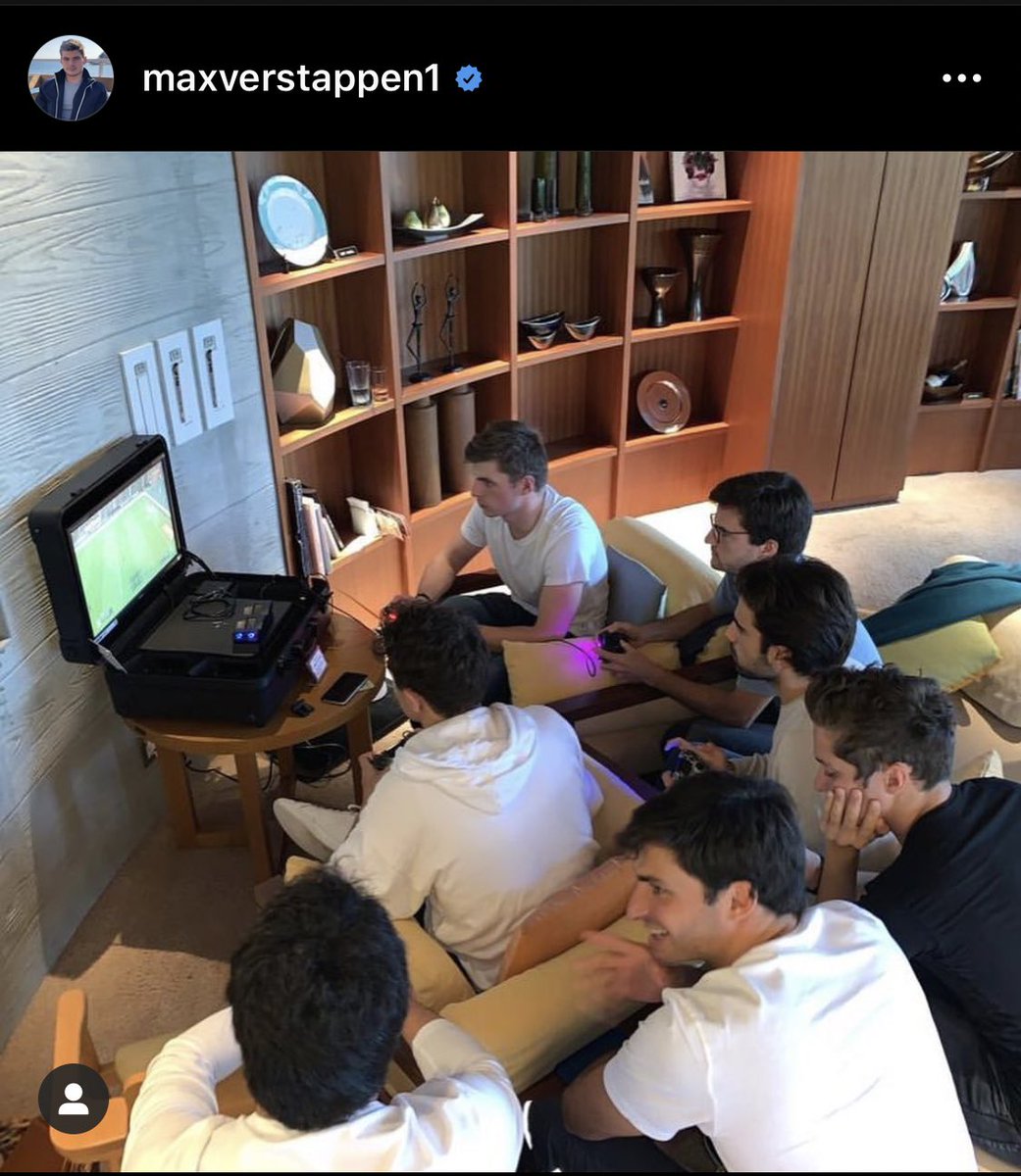 フェルスタッペンはサインツ、ペレスらと集まりテレビゲーム。会見では日本で買った「FIFA(サッカーゲーム)」で遊ぶと話していました。