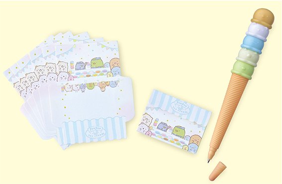すみっコ型のアイスが重なったアイスクリームボールペンとアイスクリームメモはあつい夏にピッタリ♪ 詳しい情報はサンエックスブログ(bit.ly/2vgEyN5)をチェック☆(J)