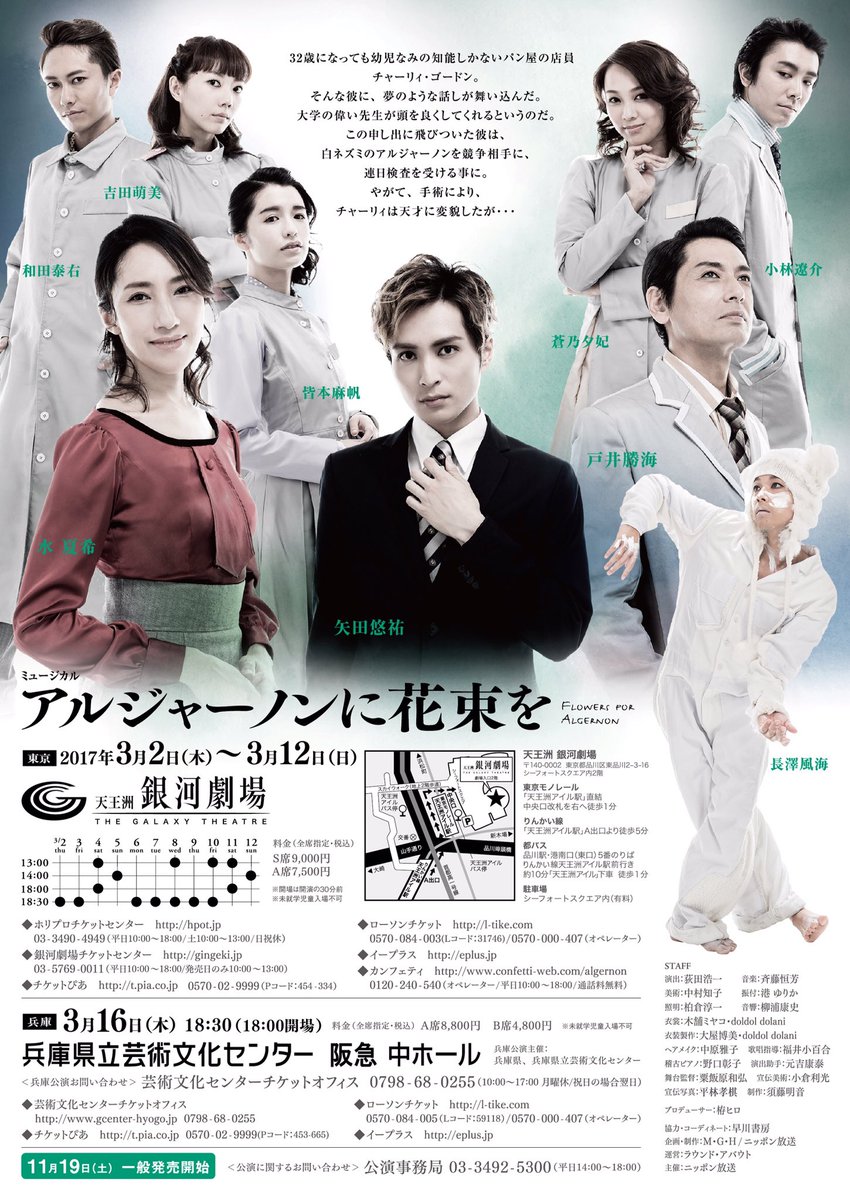 水夏希が来年3月に出演させていただきますミュージカル【アルジャーノンに花束を】のビジュアルが解禁になりました。algernon-musical.com