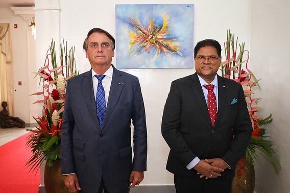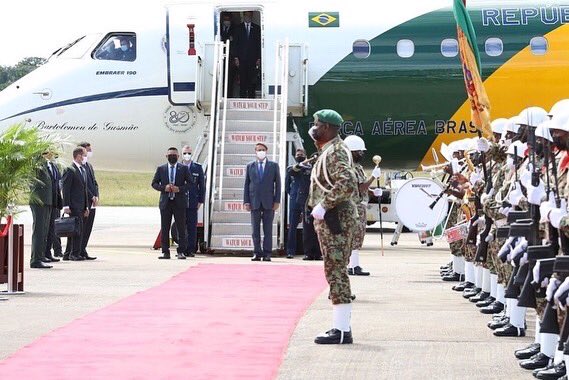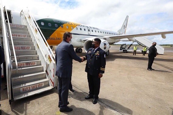 🇧🇷🤝🇸🇷 O Presidente Jair Bolsonaro desembarcou, nesta quinta (20/1), em Paramaribo, capital do Suriname, onde participa de agenda diplomática com o governo local. Estão previstos encontros com os presidentes do país anfitrião, Chandrikapersad Santokhi, e da Guiana, Irfaan Ali.