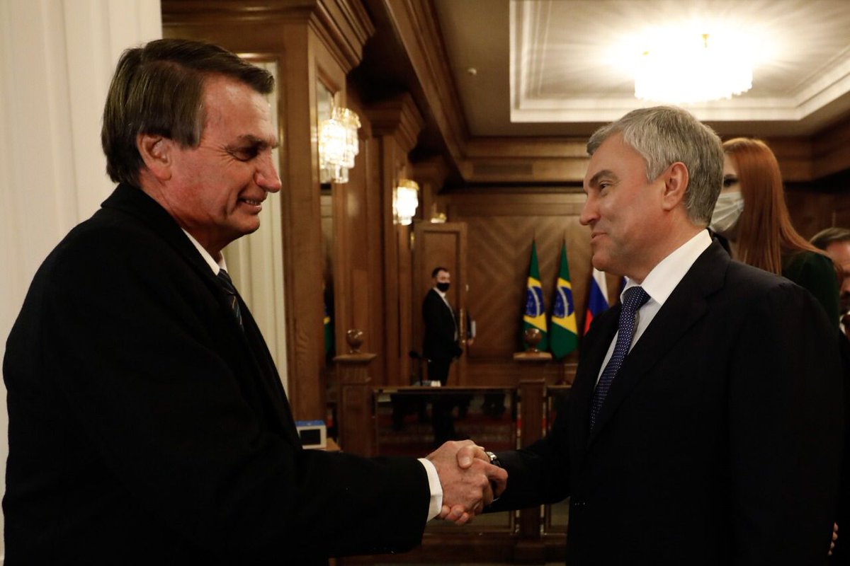 #AoVivo: O Presidente Jair Bolsonaro chega ao Kremlin, a sede do governo russo em Moscou, e é recepcionado pelo Presidente Vladimir Putin. Acompanhe: