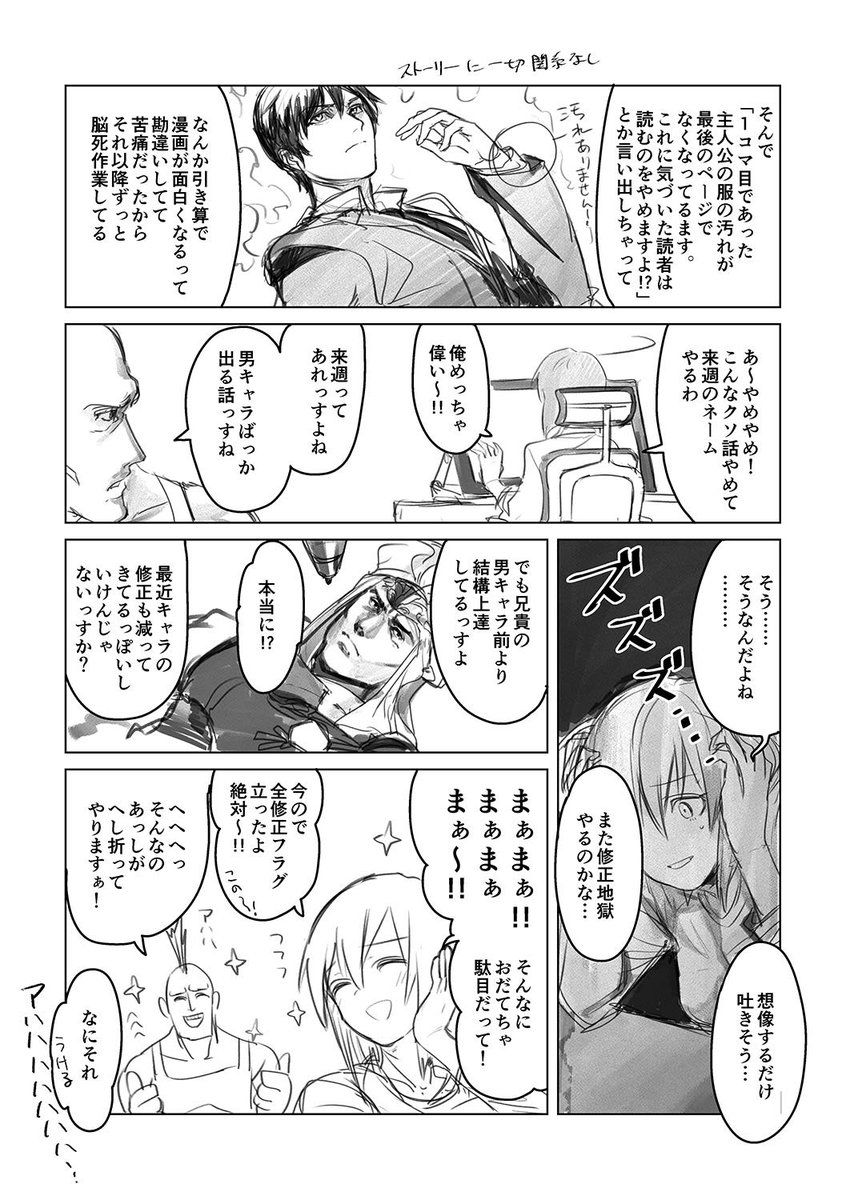 前の漫画描いてたとき、突然上の人が「さっきファイアパンチ読んで感動したんでファイアパンチみたいな路線に変更しましょう」とか言い出して頭抱えながら4んでくれ~って願ったの思い出した