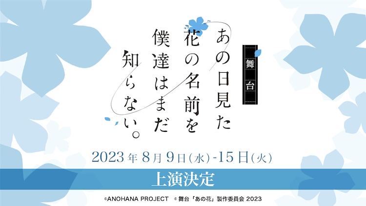 舞台あの花2023年版の上演決定!じんたん役に河原田巧也、めんま役を市川美織が続投