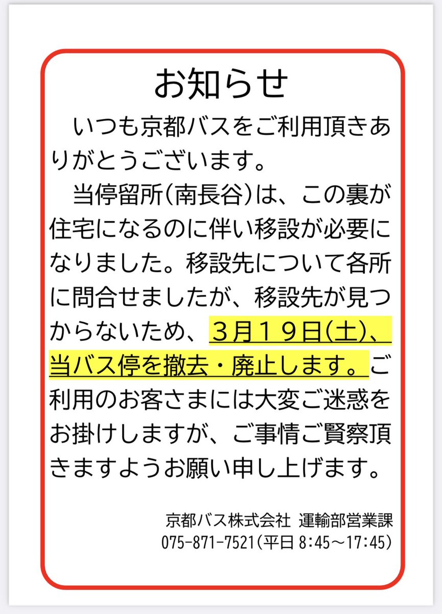 京都バス、怒りの撤去宣言。笑 改正の前日発表とは、よほどギリギリまで交渉していたのでしょうか。