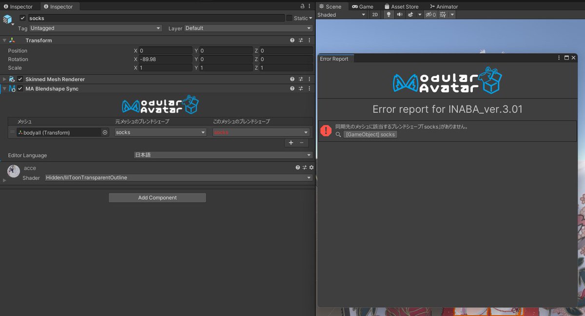 ModularAvatar 1.4.4をリリースしました。主な変更点としては、エラーの原因が探りやすくなるUIを追加しました。万が一内部エラーが発生しても、おおよそ原因となっているオブジェクトへ飛べるボタンも提示します!