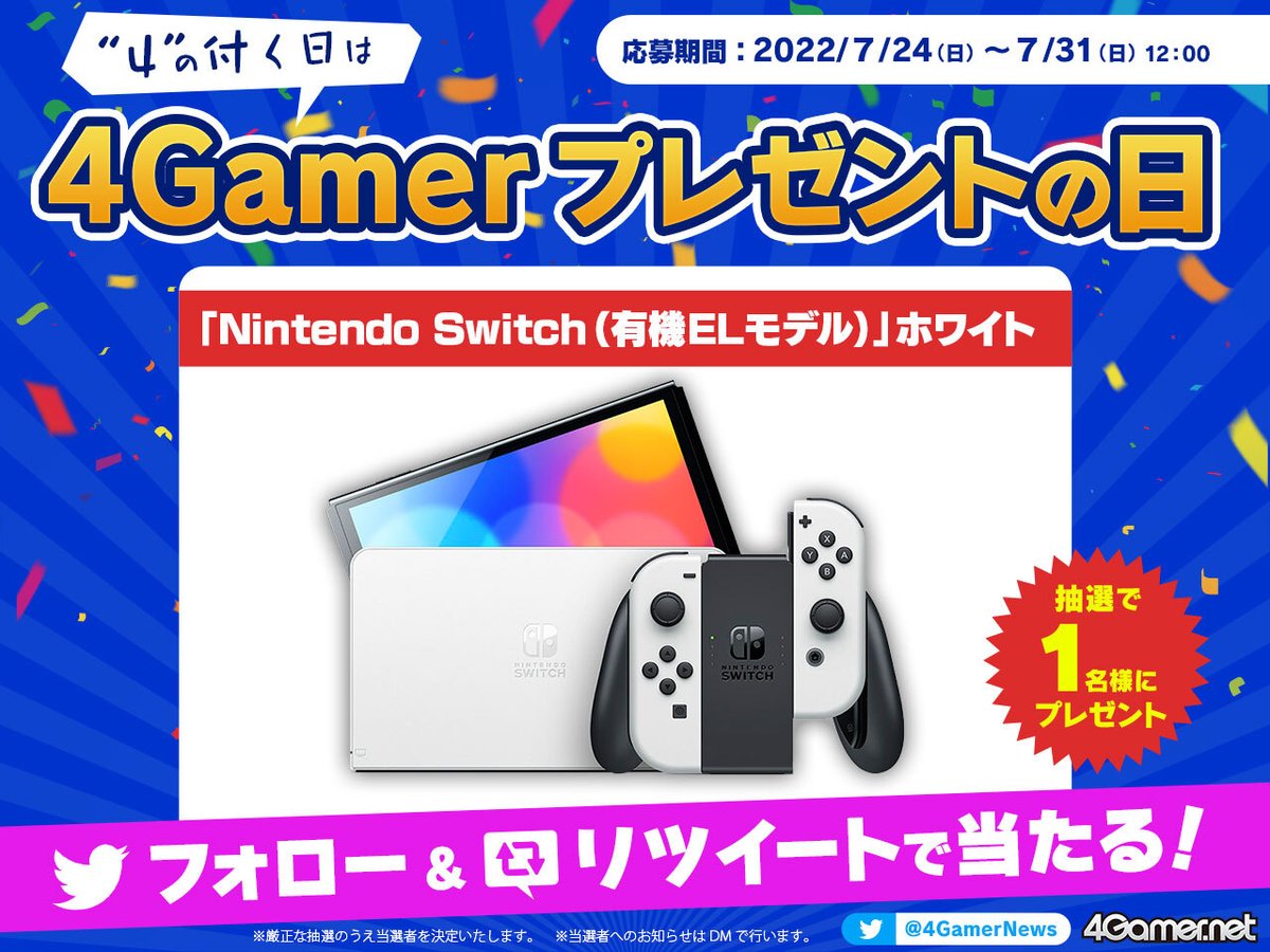 今回は「Nintendo Switch(有機ELモデル)」を抽選で1名様にプレゼント🎁