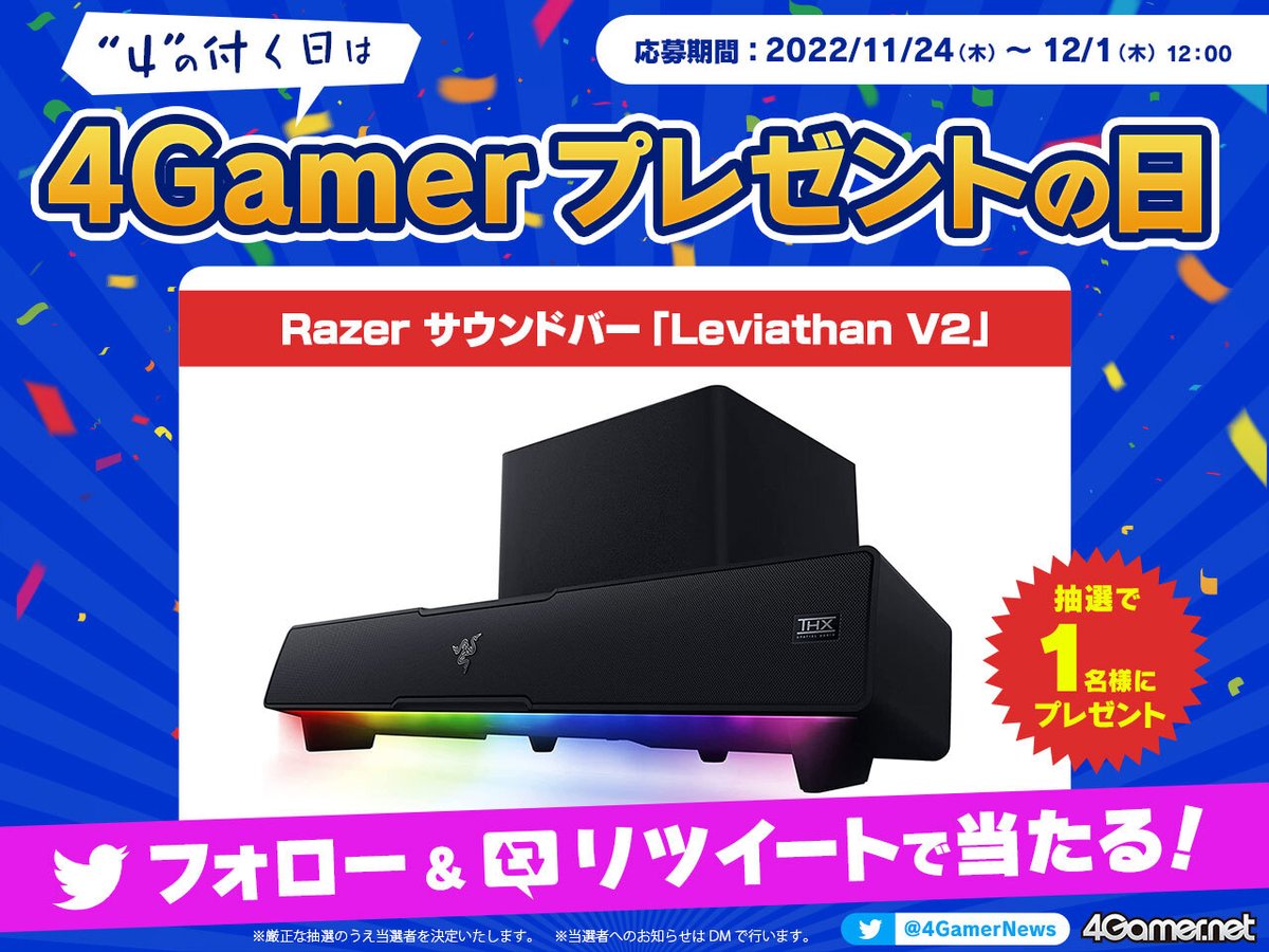 今回はRazerのサウンドバー「Leviathan V2」を抽選で1名様にプレゼント🎁