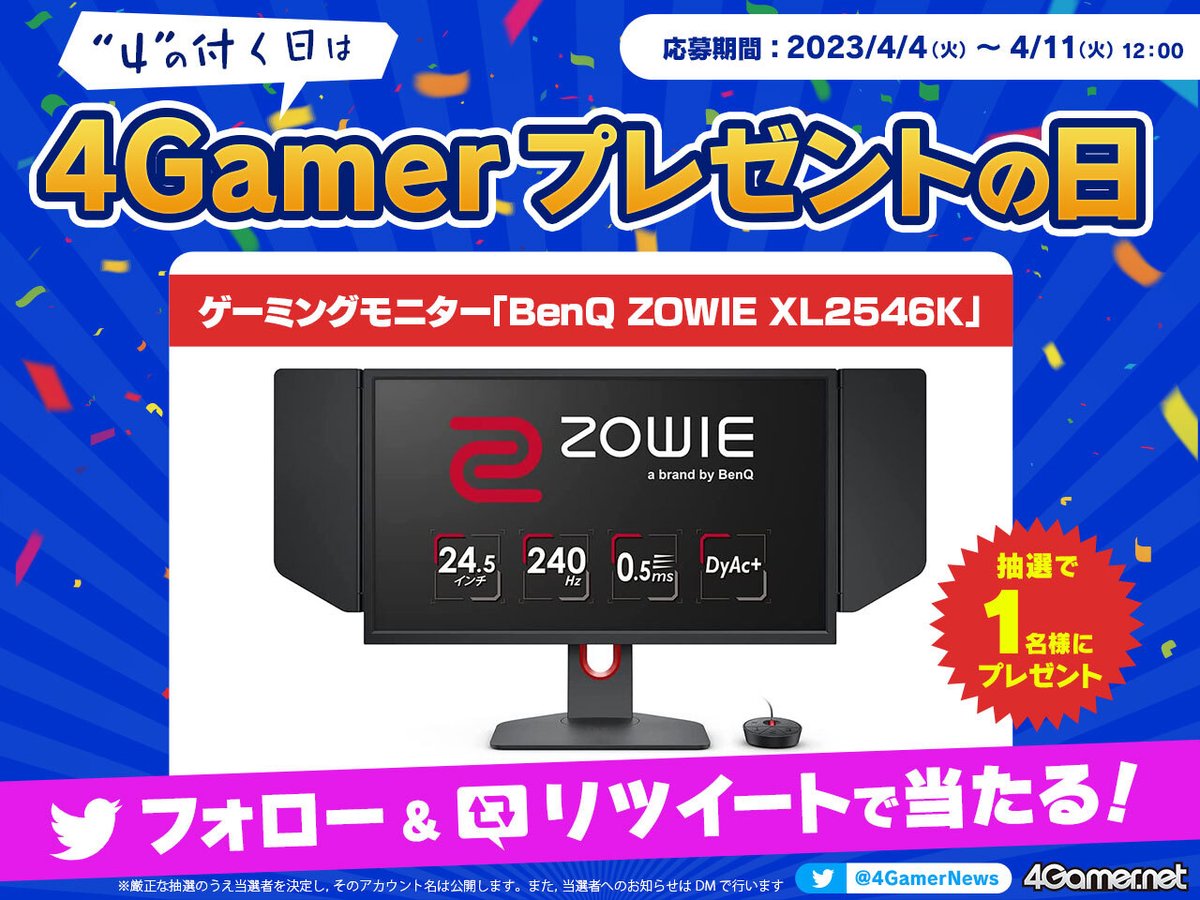 今回はゲーミングモニター「BenQ ZOWIE XL2546K」を1名様にプレゼント🎁