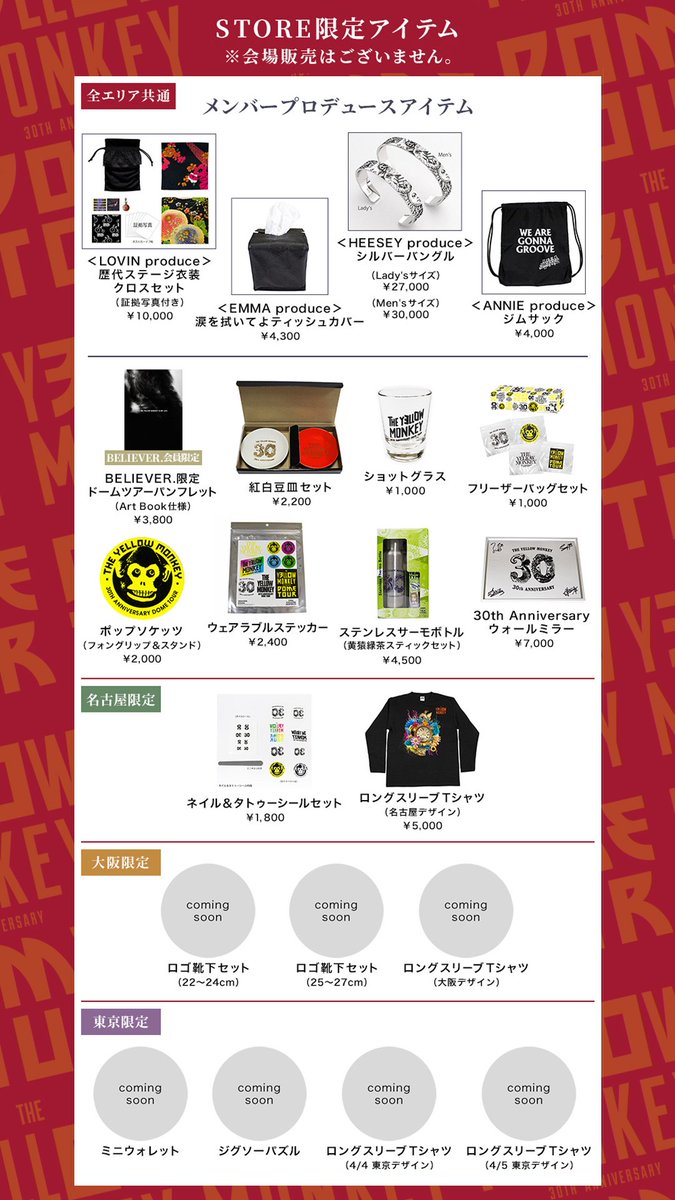 各エリアごとの限定アイテムのほか、ツアーパンフレットはBELIEVER.会員限定版が登場。ぜひチェックしてください!