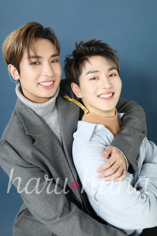 【VOL.59 #B1A4 裏話⑤】撮影時、カメラマンに「もっと近寄ってみて」と言われた2人。サンドゥルがふざけてゴンチャンをギュ~ッとすると、2人で爆笑していました。