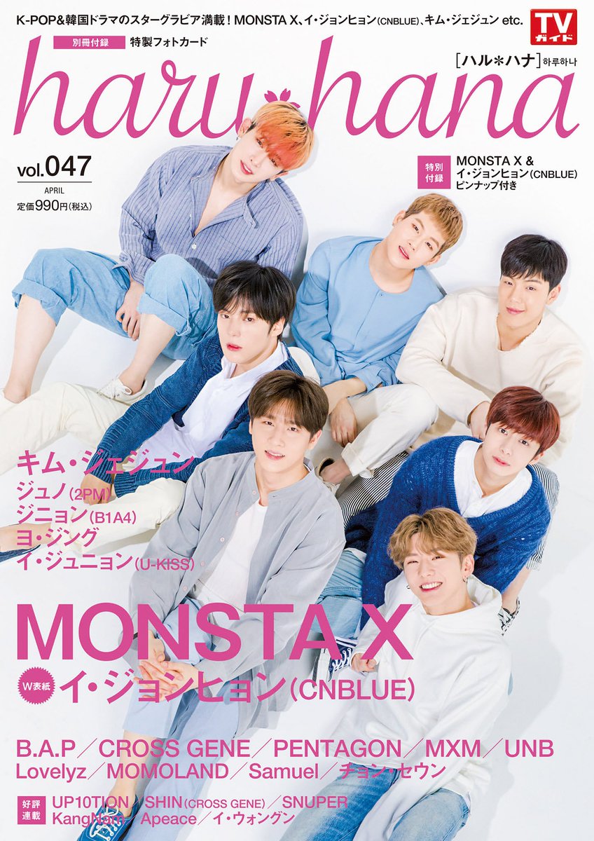 3/26発売「haru*hana VOL.47」の表紙を公開!表紙を飾ってくれたのは #MONSTA_X です!ピンナップも付いてます! 弊社WEBストアでのご予約はこちら→zasshi.tv/products/detai…