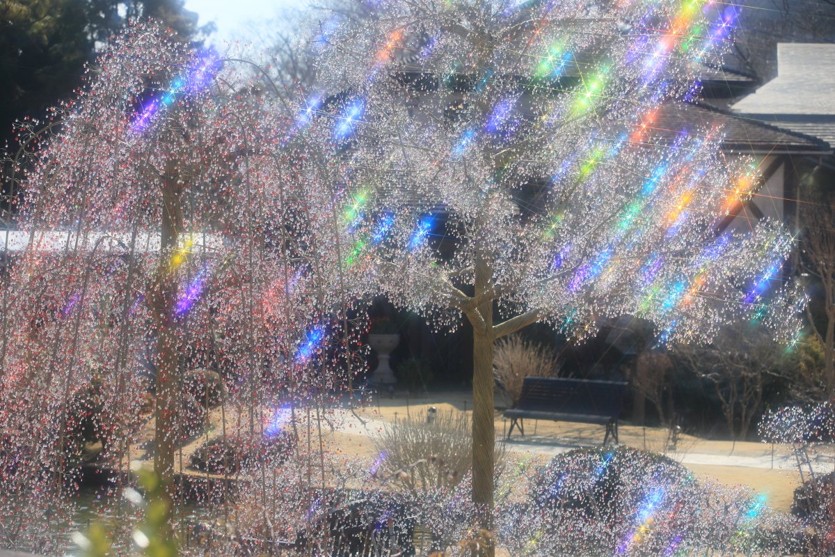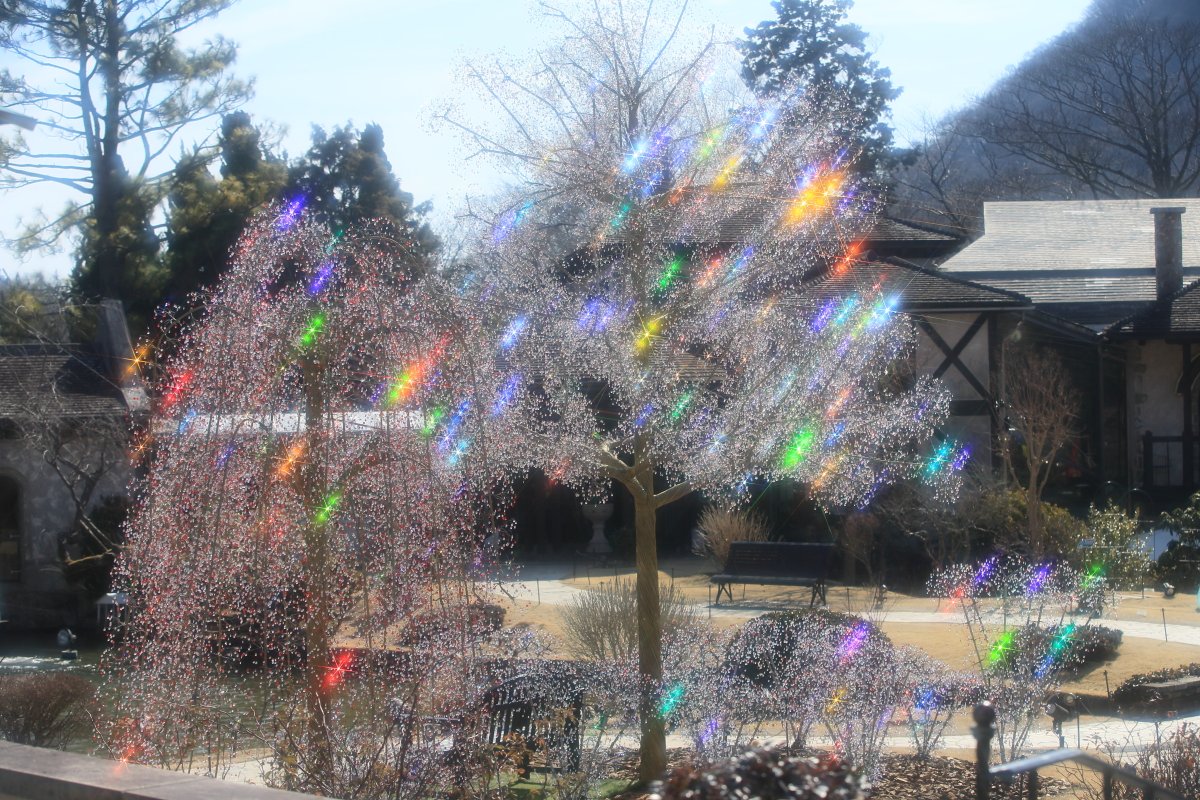 今朝は晴れて、クリスタル・ガラスのクリスマスツリーも輝いていました。