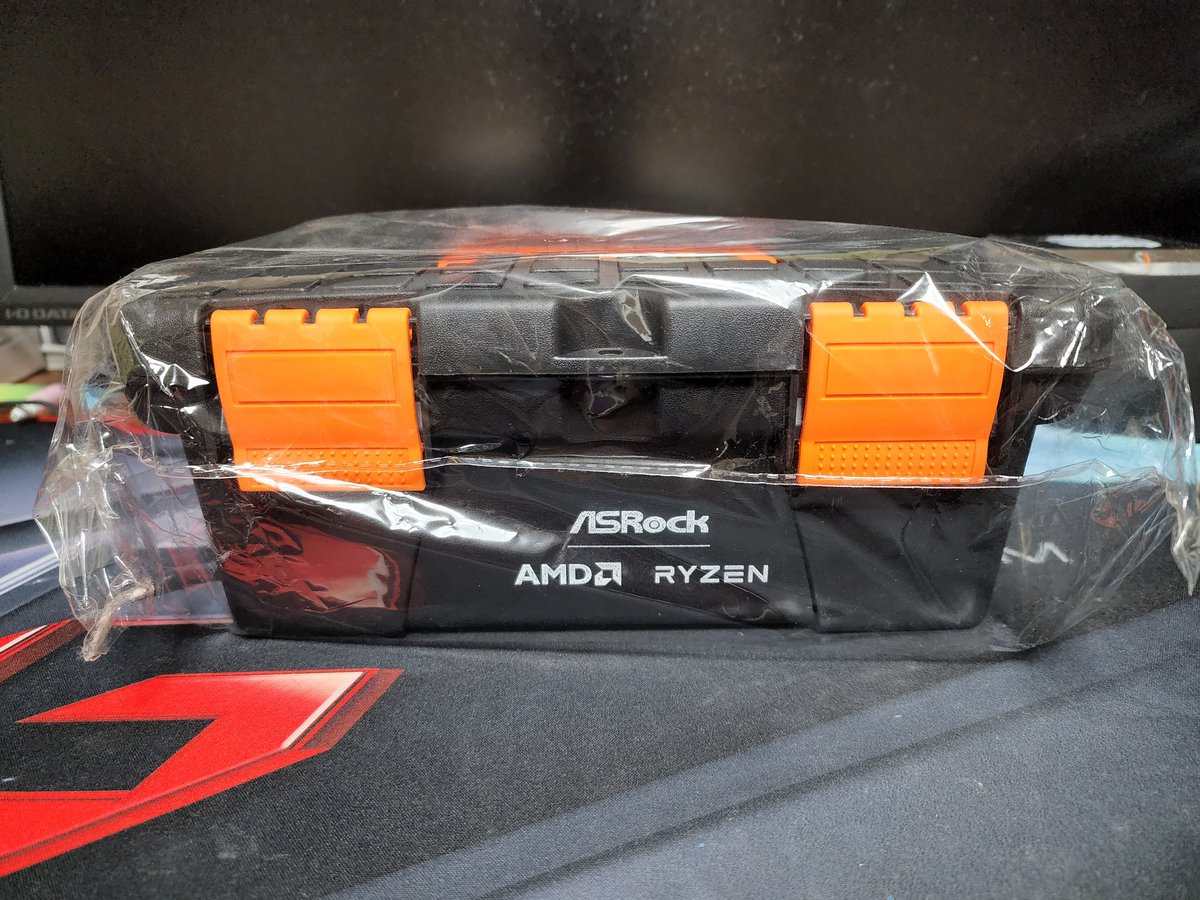 ノベルティとしていただいた、ASRockとAMDのロゴが入った工具箱になります!