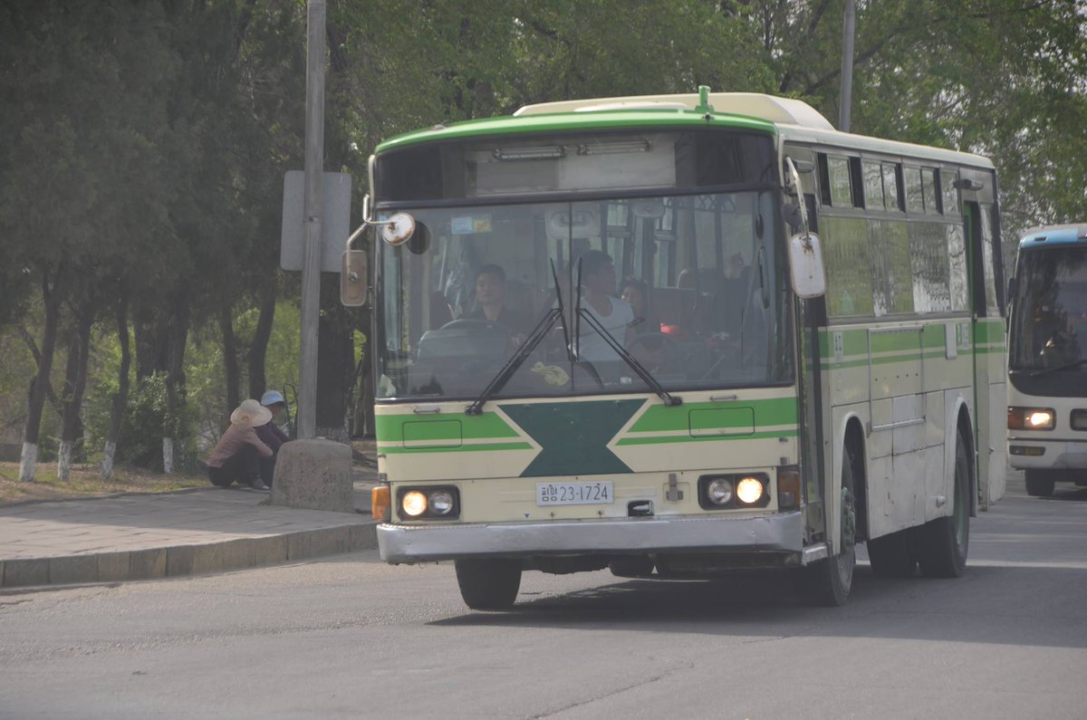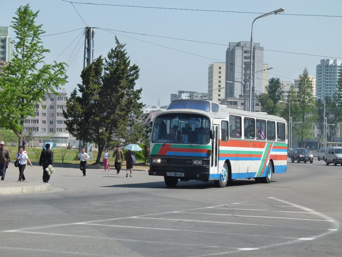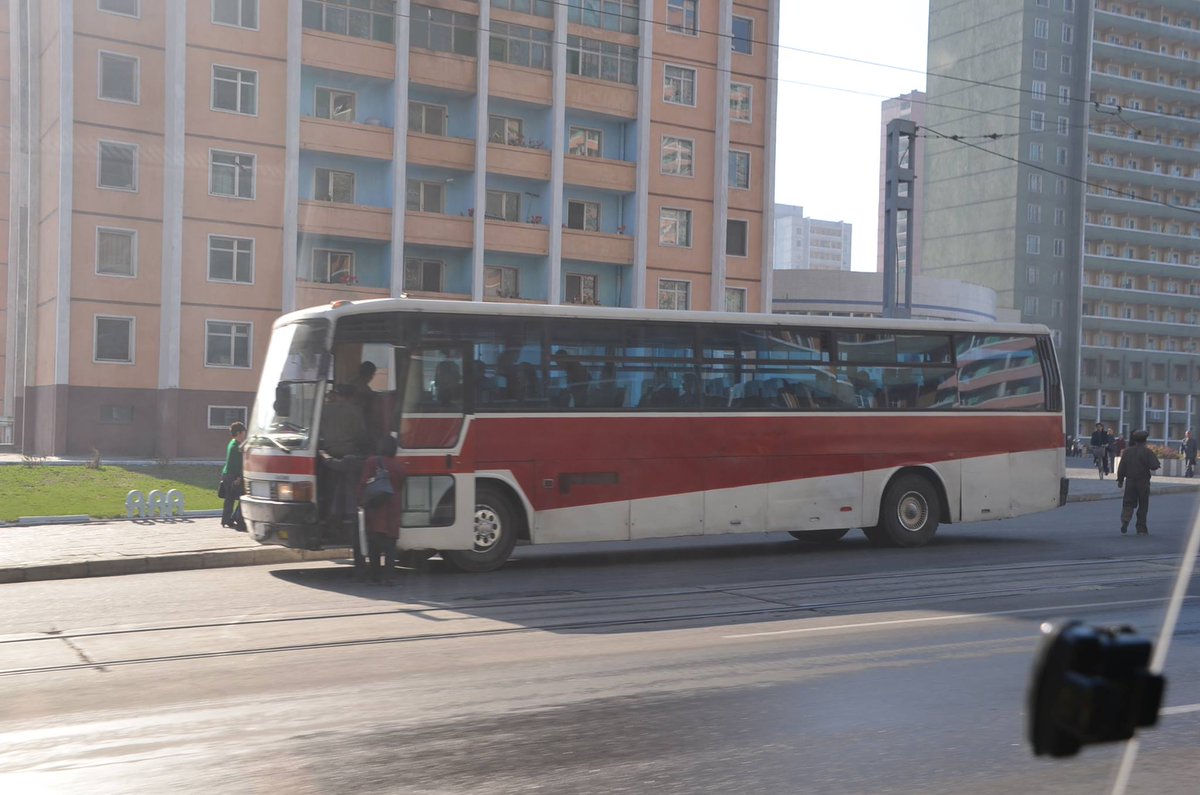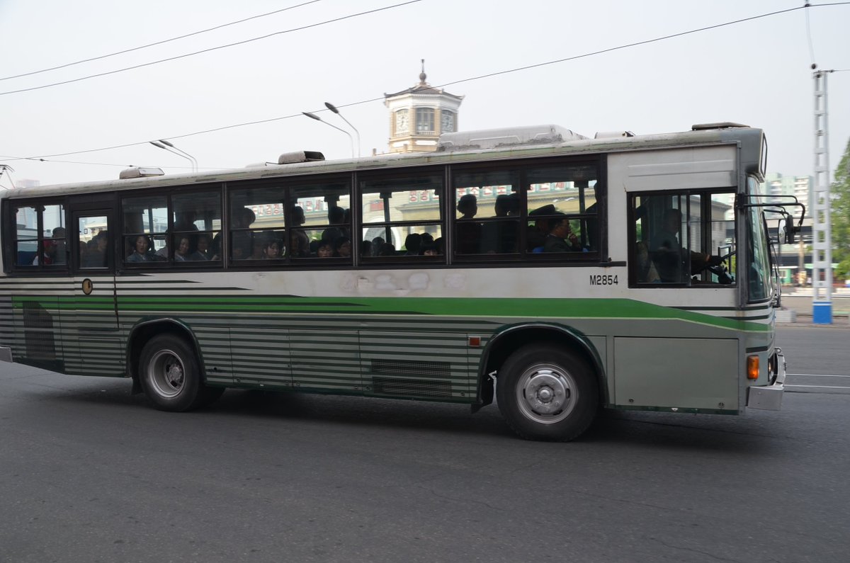 平壌市内を走るバスです。