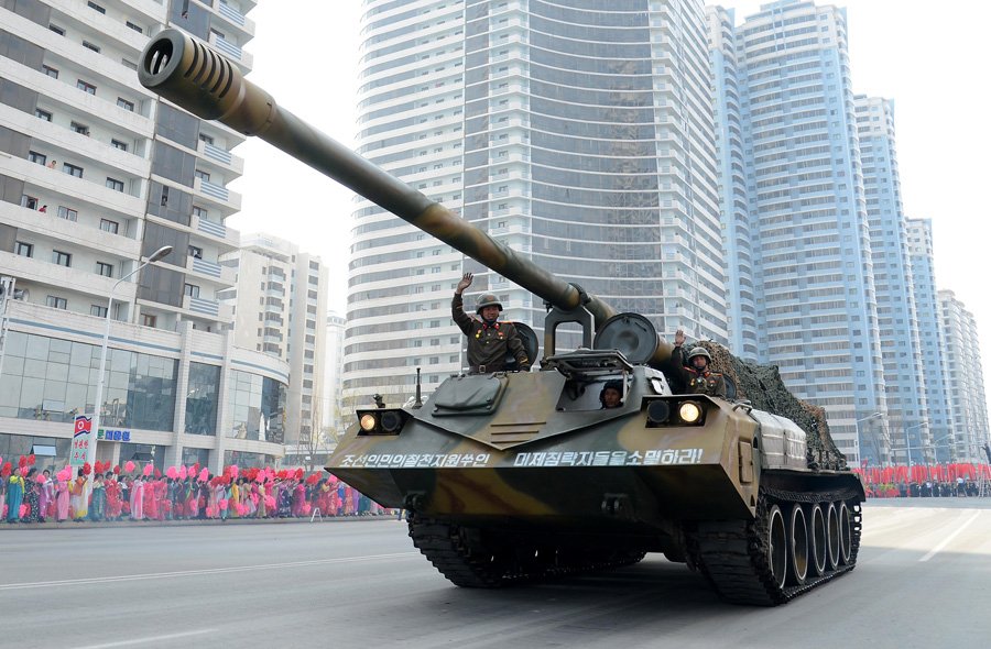 平壌市民と一緒に目の前で軍事車両が観れますよ!