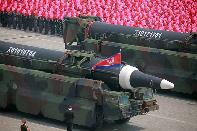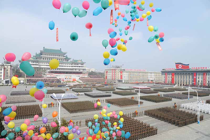 軍事パレードを終えた兵士たちを歓迎する平壌市民