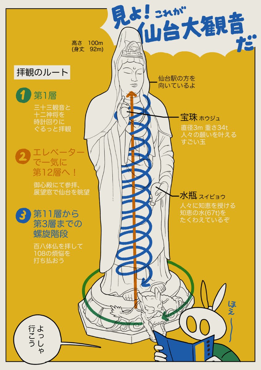 地上100mの高さを誇る日本一巨大な観音様「仙台大観音」の中に入ってきました