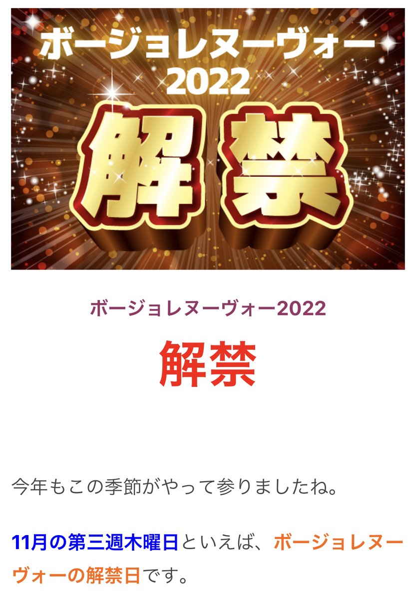 【速報】ボージョレヌーヴォー2022 解禁【今年はレアヌーヴォー】
