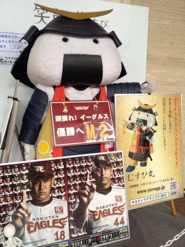 スタッフからお知らせ:むすび丸課長はイーグルスの優勝が決まったときのお祝いコメントを考えはじめたようです。マスコミ向けのようです。どの社からも求められることなく、陽の目を見ないコメントになりそうですが。 #むすび丸