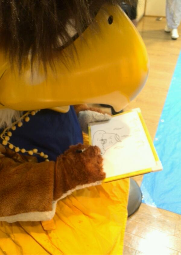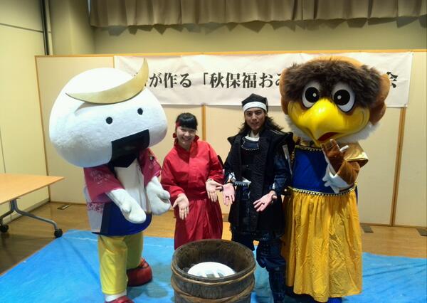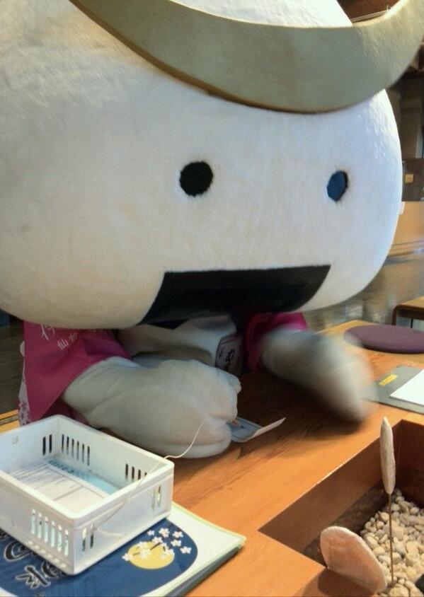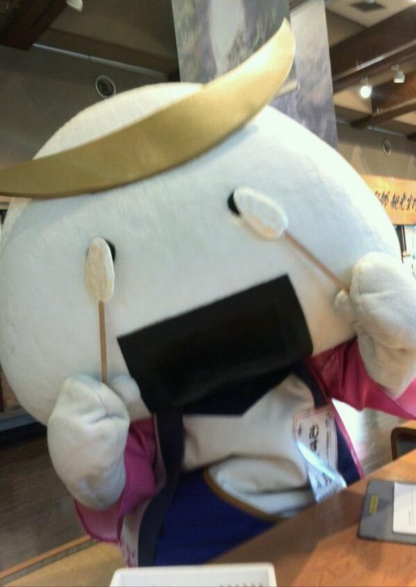 スタッフからのお知らせ:本日大忙しのむすび丸課長。六魂祭の合間を縫って「伊達武将隊バスツアー」のお客様を、今年デビューした仲良しの村田町観光PRキャラクター「くらりん」さんとおもてなし。その際の打ち合わせの一コマです。 #むすび丸