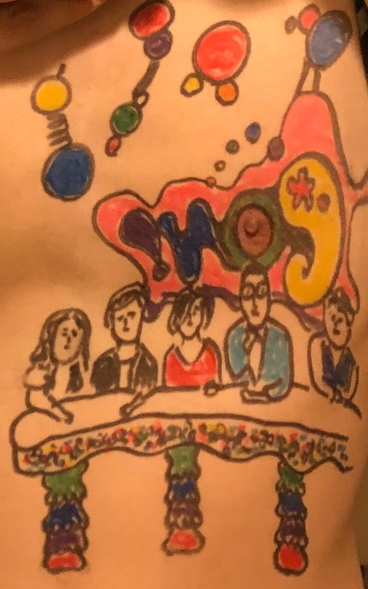 火曜日PON!1年半ありがとうごさいました〜! 山本アナ、笹崎アナ描けなくてすみません。皮膚足りなかったですm(_ _)m あとよく見たら足を描き忘れてます!