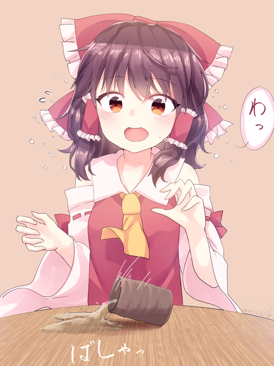 飲み物をこぼしてしまってわちゃわちゃしてる感じのれいむ