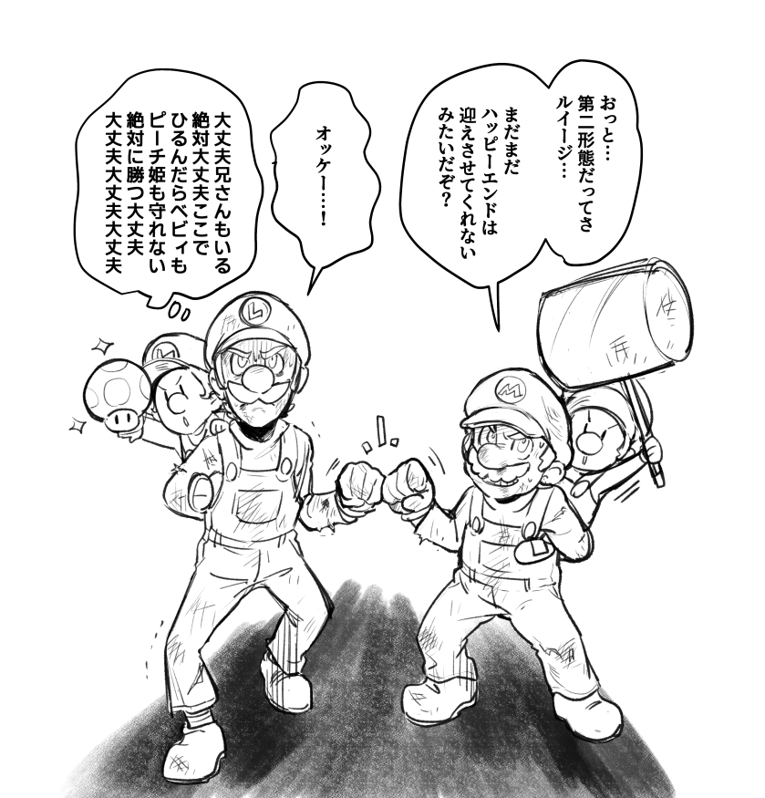 RPG2x2絵日記。 🍄👾👸倒しました。 大人兄弟は倒れまくりましたがベビィたちは無傷でした…!!