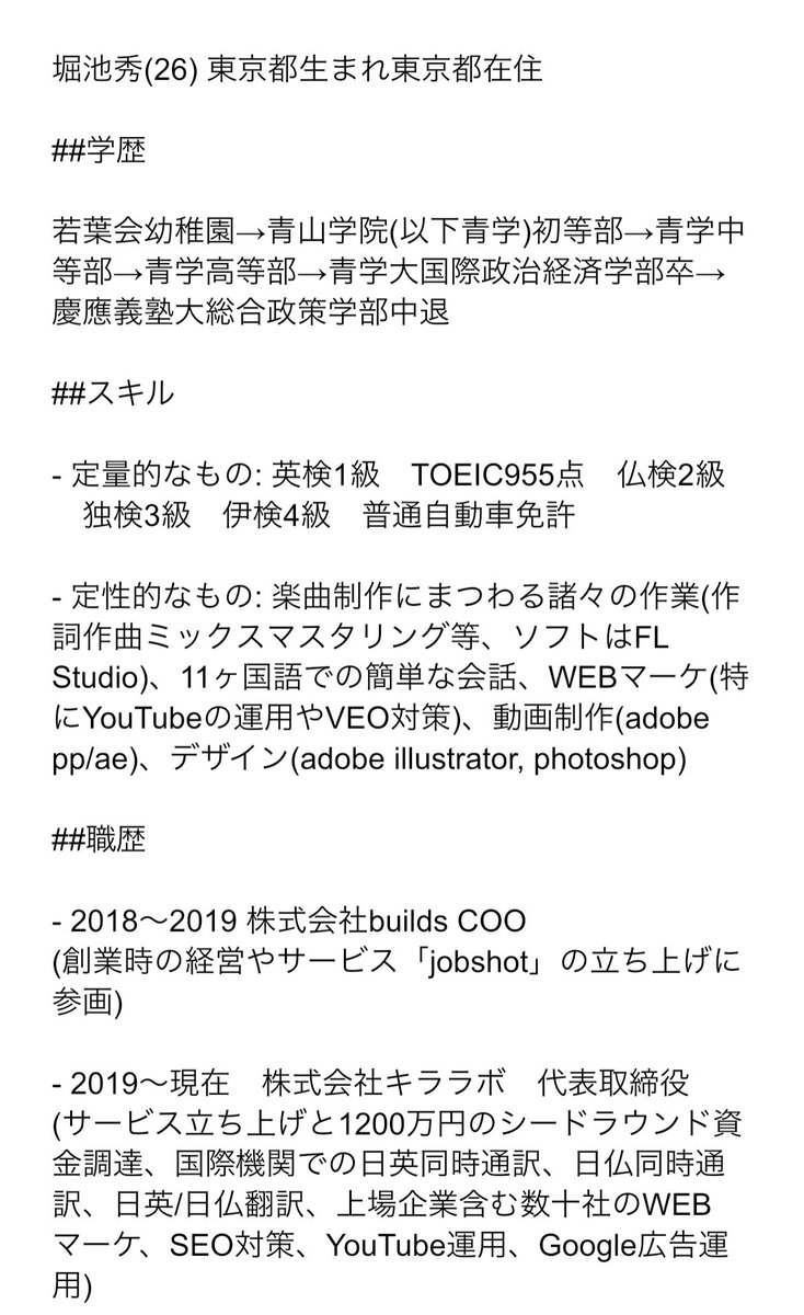 indeedと睨めっこしていますが、わずかな望みにかけてこちらでも履歴書的なものを公開しますので、もし僕に興味のある企業様がいらっしゃったらDM等いただけたら幸いです…