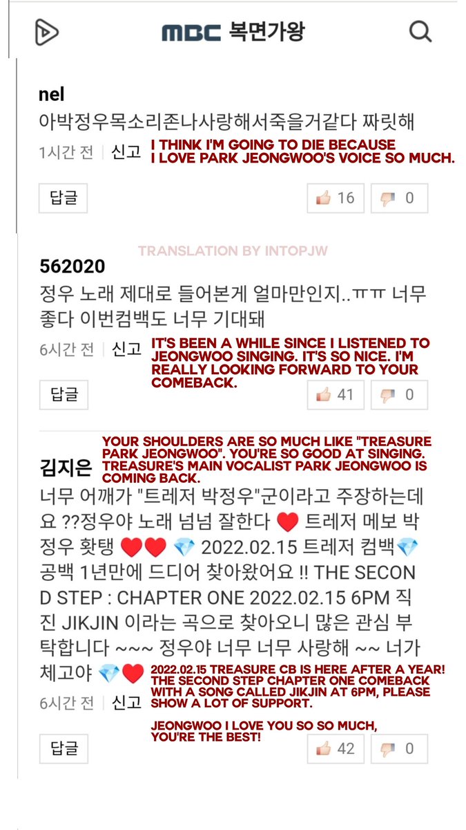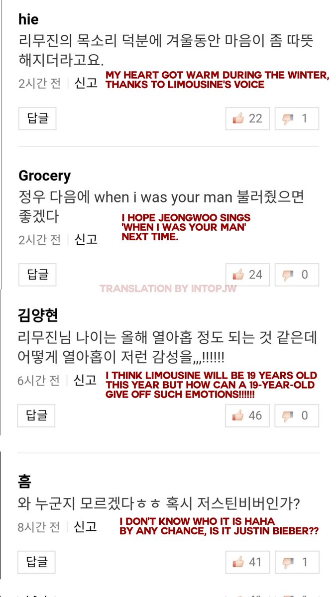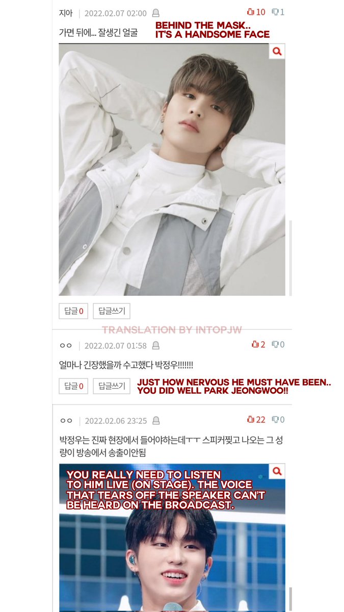 Translated some comments from Jeongwoo's PANN and his performance vid from NAVER TV 💥