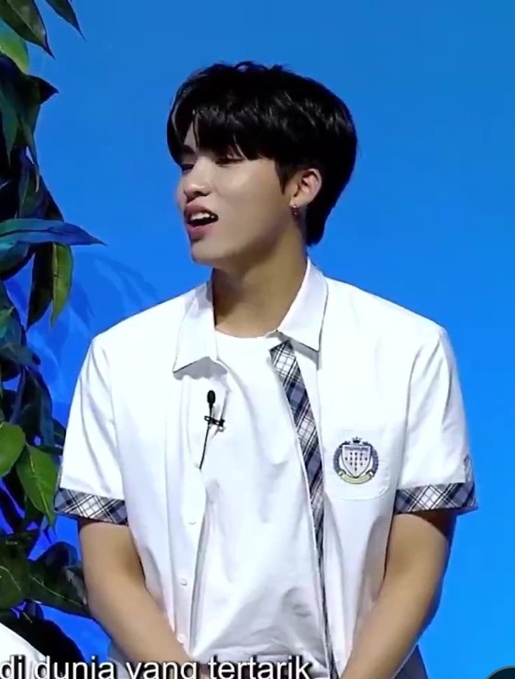 kteume said her sister or older friend (?) from SOPA told her that Jeongwoo dyed his hair to blue.