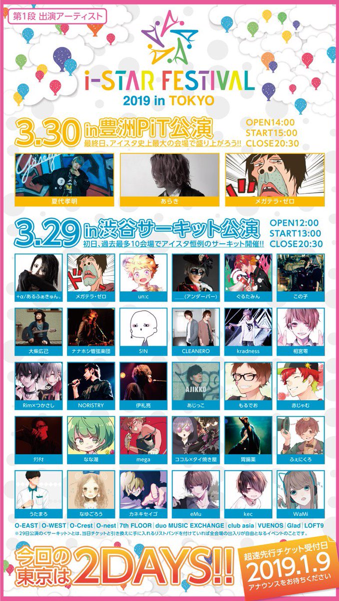 日付が変わりまして本日2月28日20:00に、i-STAR Fes.2019 in TOKYO 渋谷サーキット(29日公演)のタイムテーブルを大公開を致します!