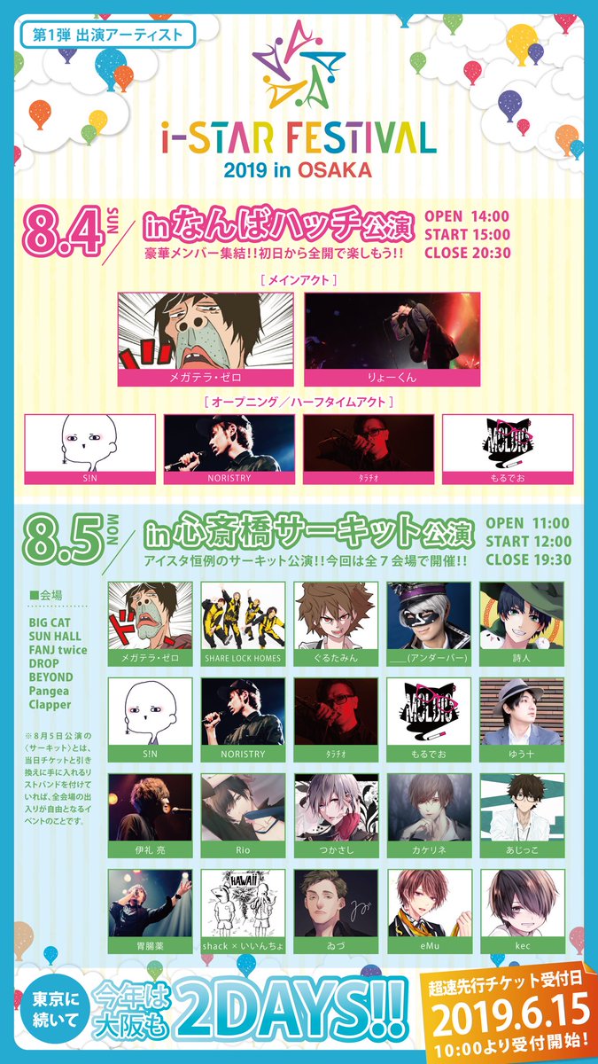 にて開催されるi-STAR Fes.2019 in OSAKAの第一弾出演者告知を、明日6月14日20時に行います!
