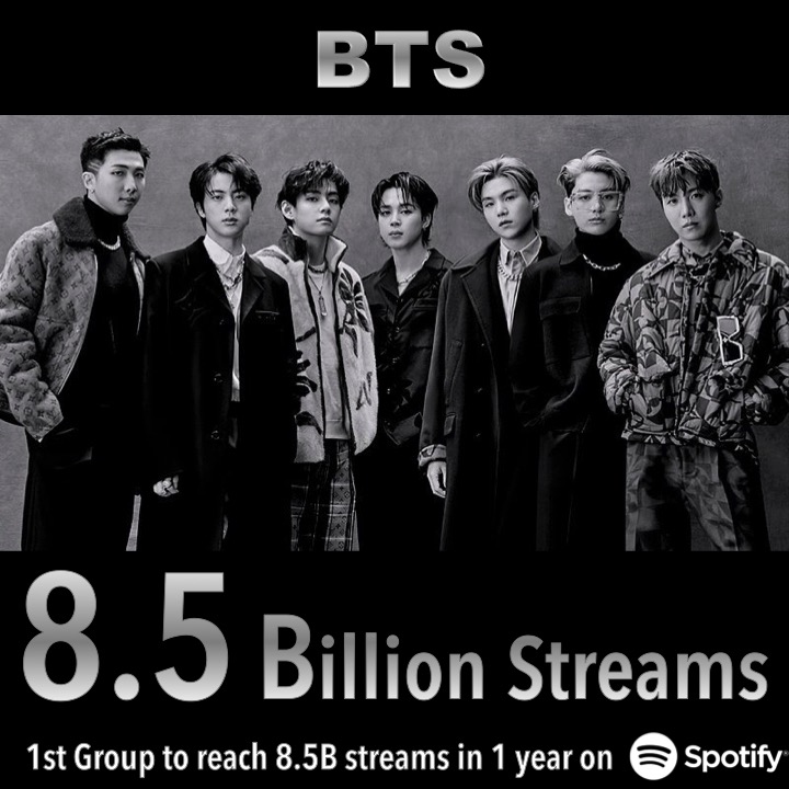 #BTS has surpassed 8.5 BILLION streams on #Spotify in 2021, the 1st group to hit the Milestone in 1 year in Spotify history!💪🥇💥8️⃣.5️⃣🅱️🎧2️⃣0️⃣2️⃣1️⃣👑👑👑👑👑👑👑💜