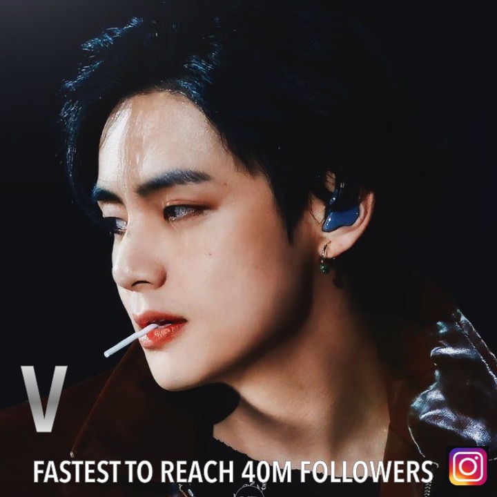 #BTS' #V is the Fastest in the World to reach 40 MILLION followers on Instagram!💪🥇💨💥4️⃣0️⃣Ⓜ️🌎🔥👑💜
