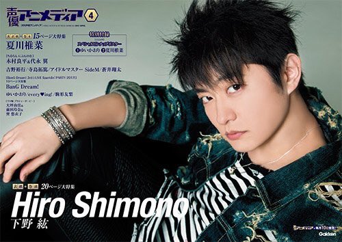 3月10日発売の声優アニメディア4月号の巻頭に、下野紘登場です! 20ページにわたる大特集、お楽しみに!!写真は店頭用ポスターです!