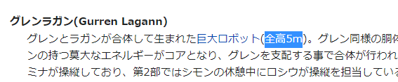 グレンラガン設定全高5メートルとは、ちょっと衝撃的事実😂...