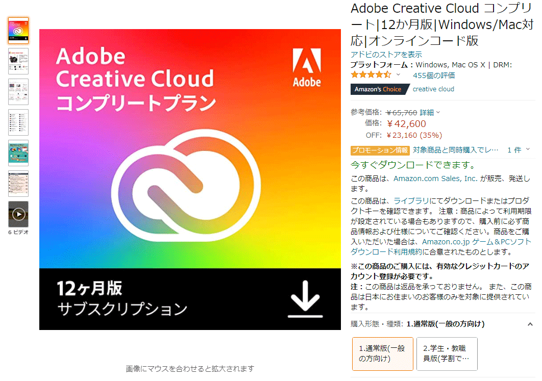 Amazonブラックフライデーセールで、Adobe CCコンプリート12か月版が、42,600円に!