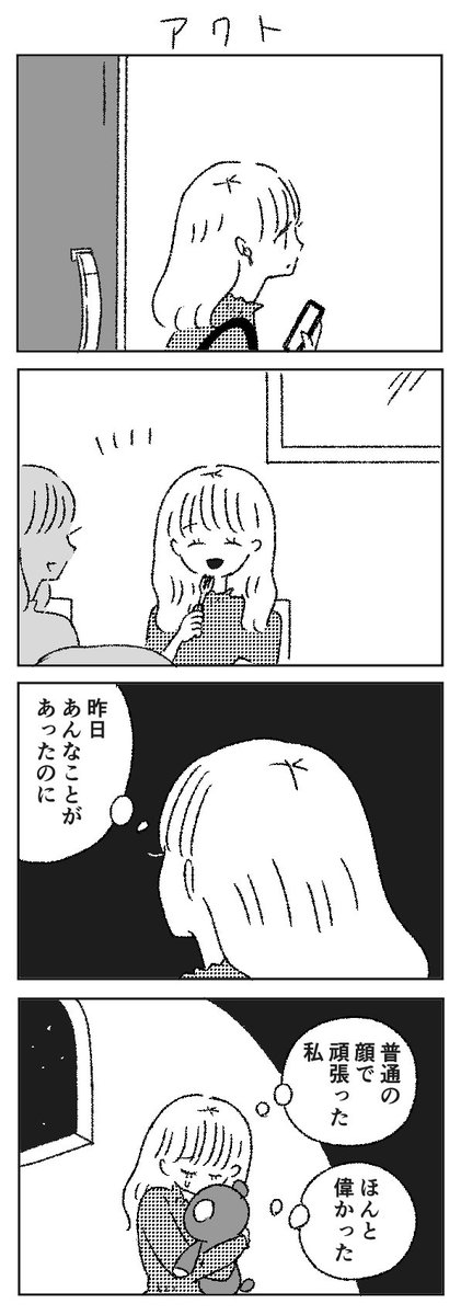 東畑開人さん著「なんでも見つかる夜に、こころだけが見つからない」をもとに4コマをかかせて頂きました❣️誰かと親密でいることについて考える中で以前から東畑先生の本を読んでいたので(しかも大学の大先輩!)光栄なご依頼でした🌟😭各タイトルは作中のキーワードから🪄 bookbang.jp/review/article…